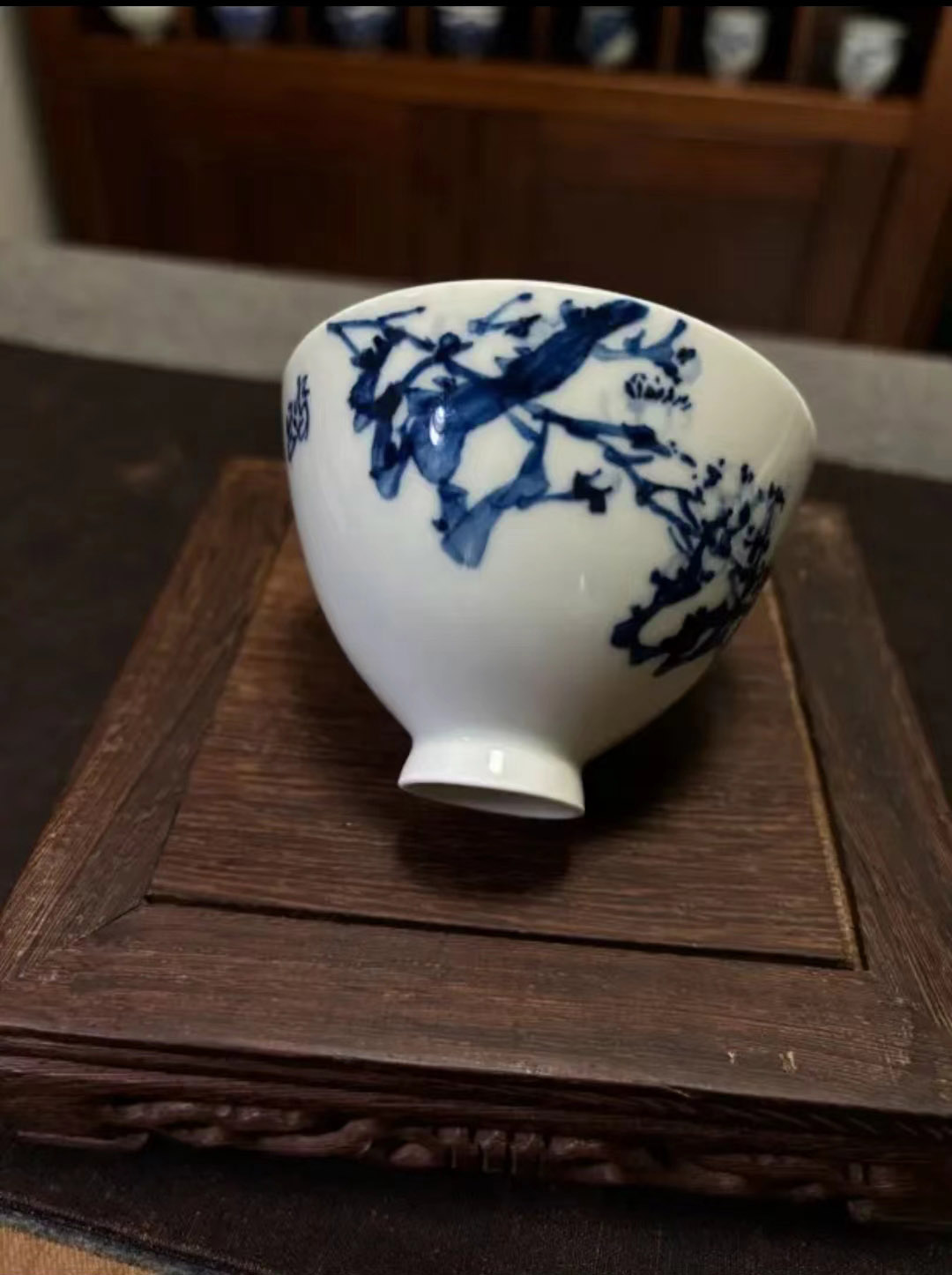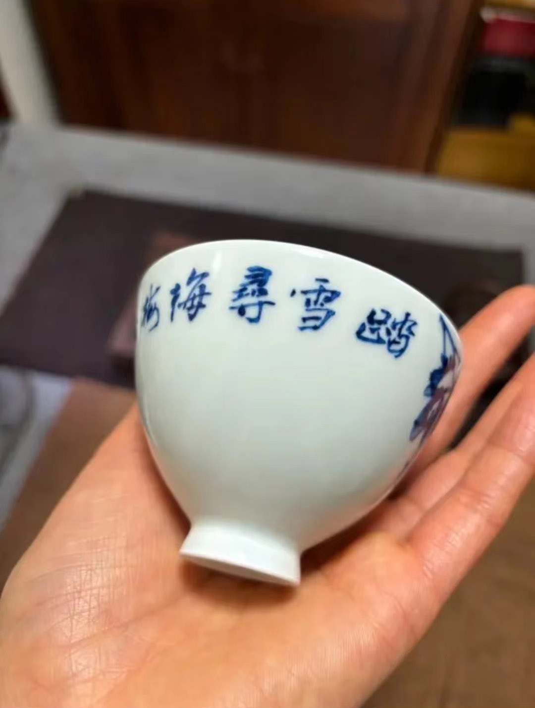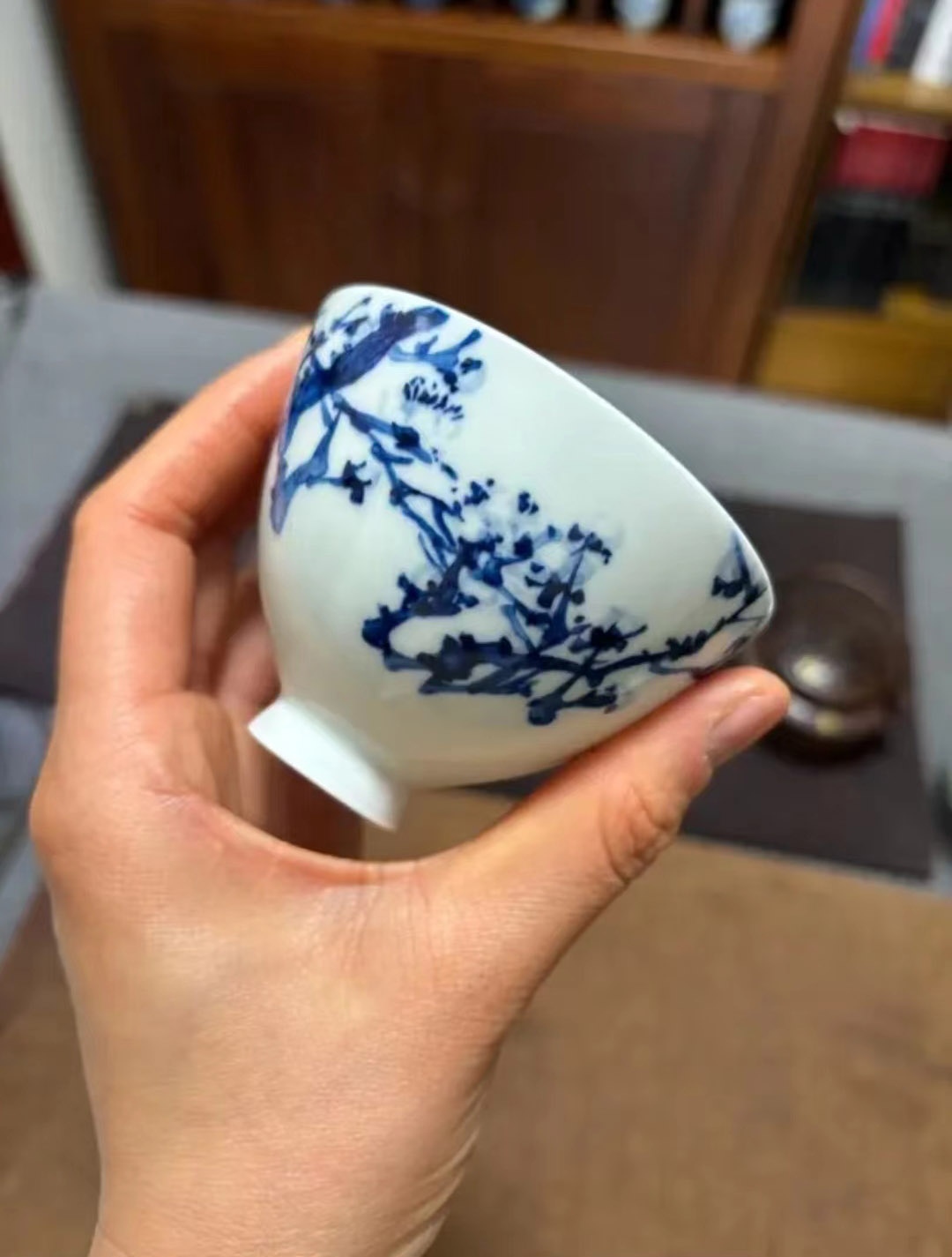 青花瓷主人杯釉下彩名窑花纹描金款